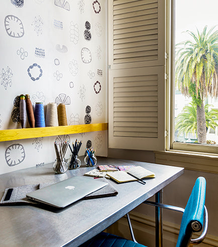 We begin our work in the studio, painting and drawing to create our unique wallpaper patterns. We then make to order, printed one at a time, just for you.